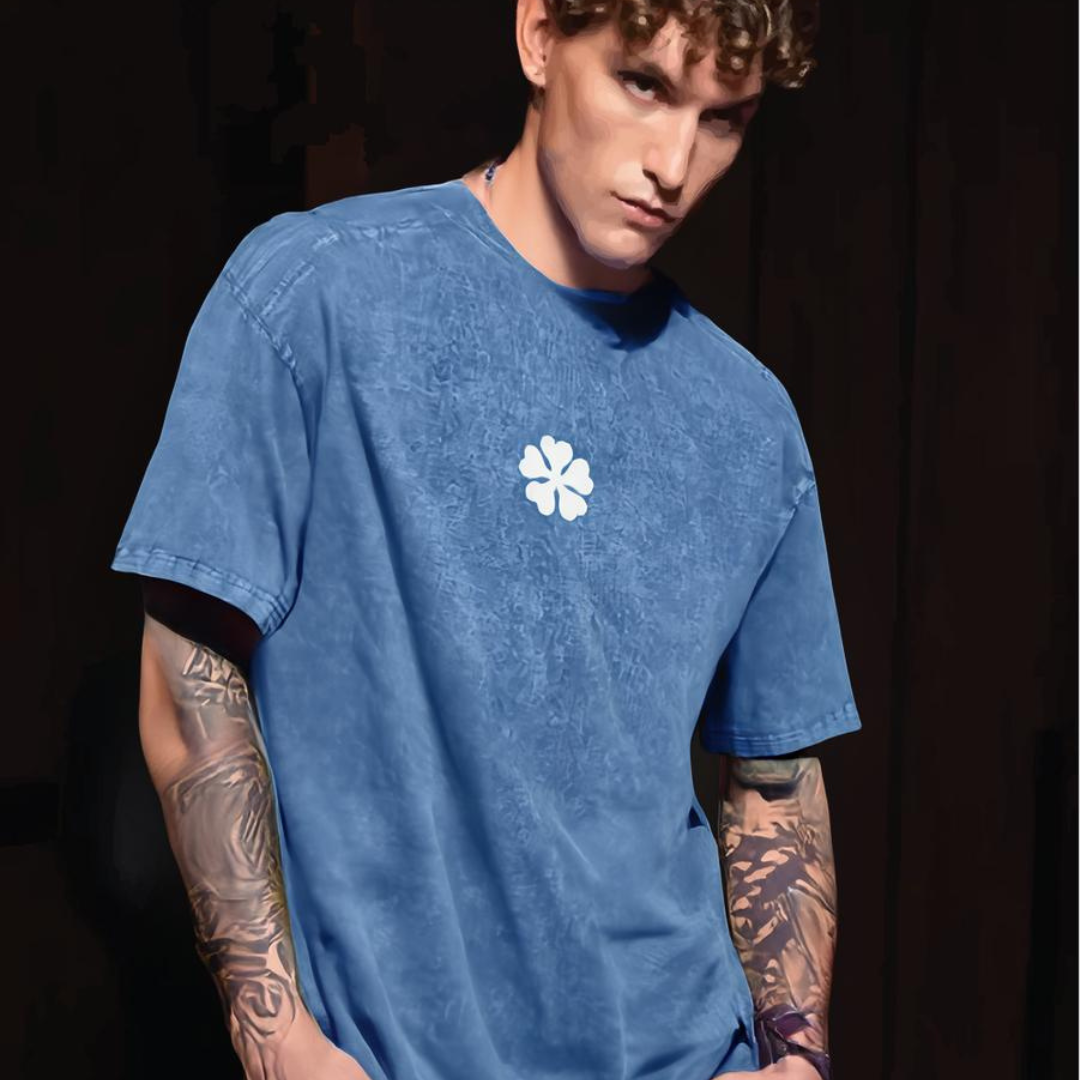 Crafted in 100% cotton with a lived-in acid wash, this oversized tee feels like it’s always been yours. A subtle clover emblem on the chest keeps it minimal but meaningful, reminding you to carry your luck quietly. The back’s shadowy demon graphic brings an edge that doesn’t shout, but speaks.